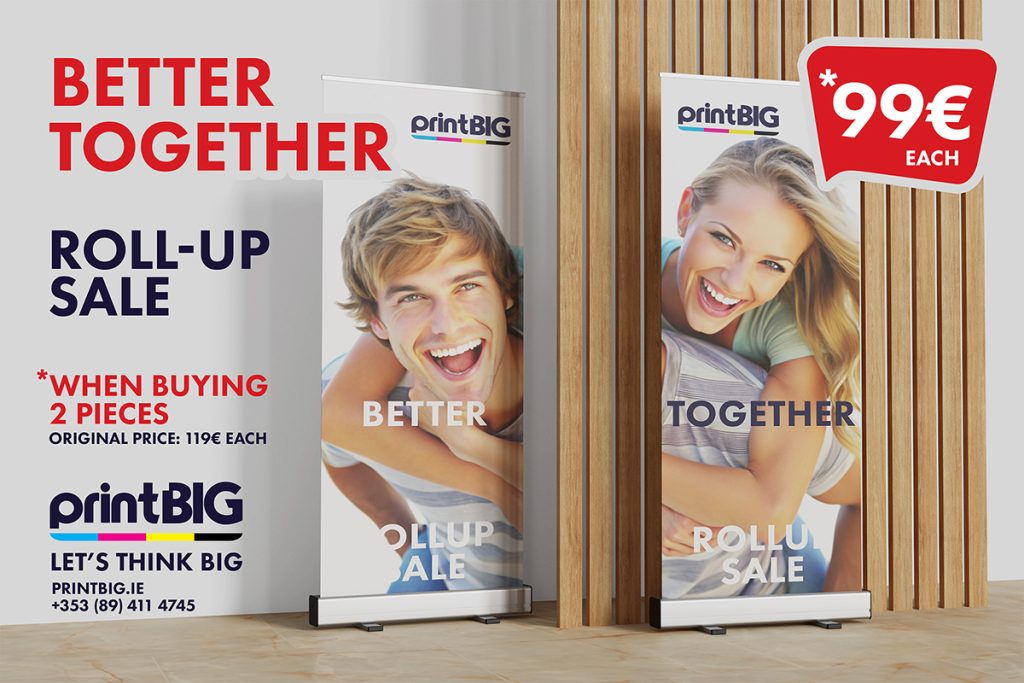 Your most loved roll-up displays now on sale! Purchase 2 pieces of standard type and enjoy the 99€ sale price on each.